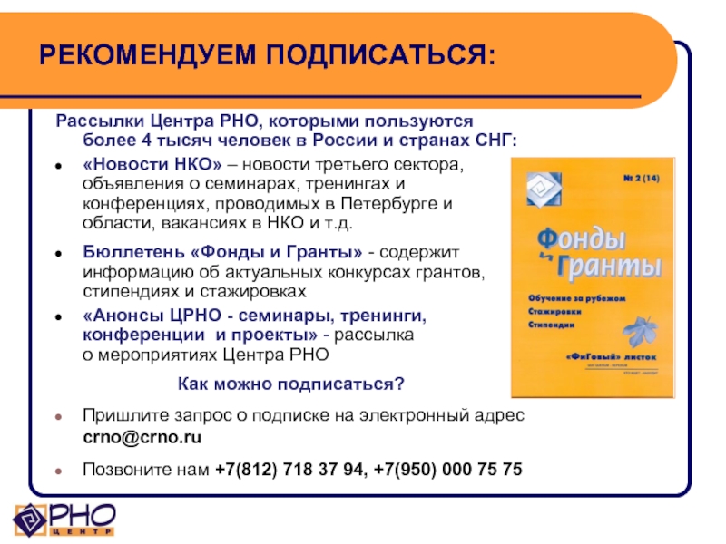 «Анонсы ЦРНО - семинары, тренинги, конференции и проекты» - рассылка о мероприятиях Центра РНО
