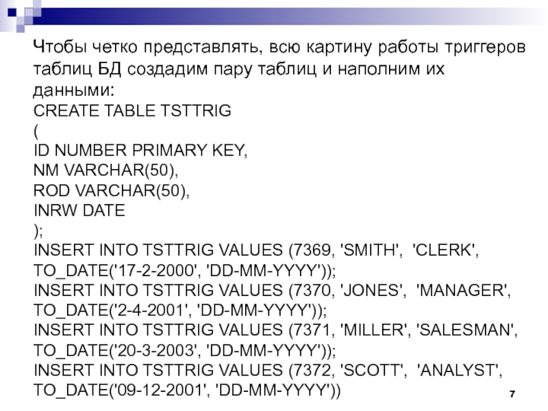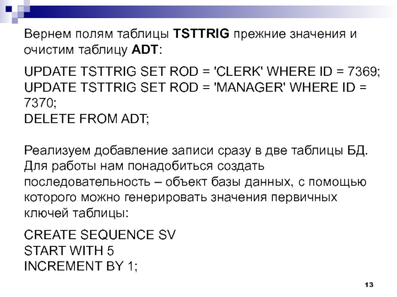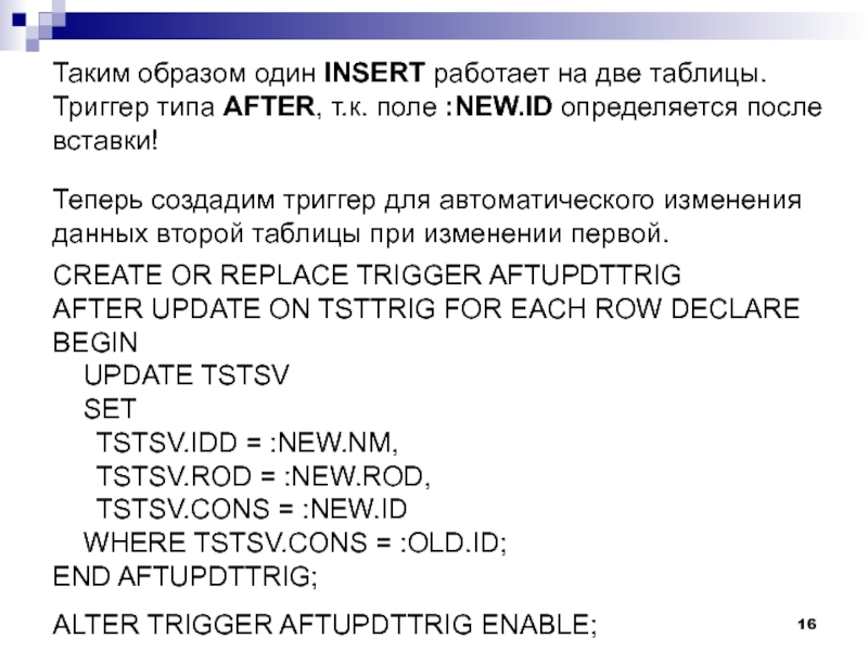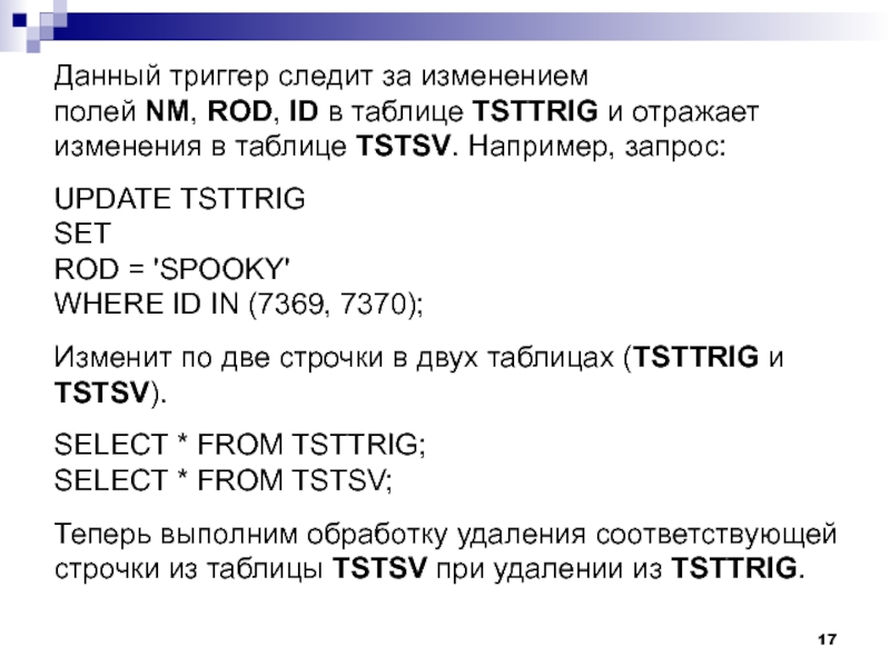 Слайд 30Изменим запись в таблице TSTTRIG следующим образом: