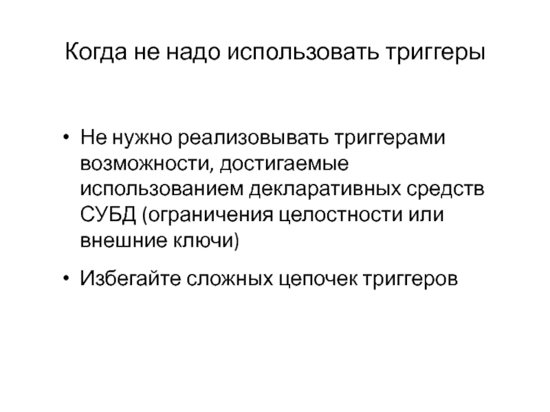 Слайд 11Когда не надо использовать триггеры
