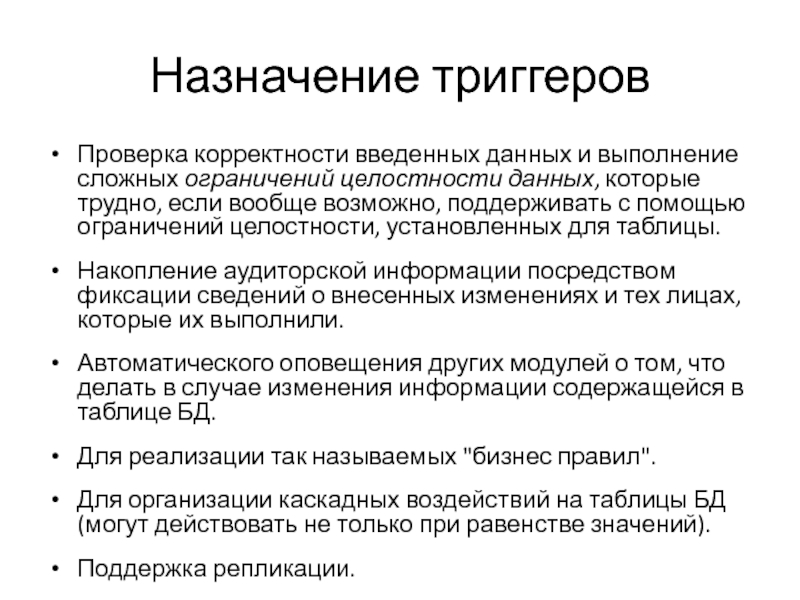 Слайд 4Назначение триггеров