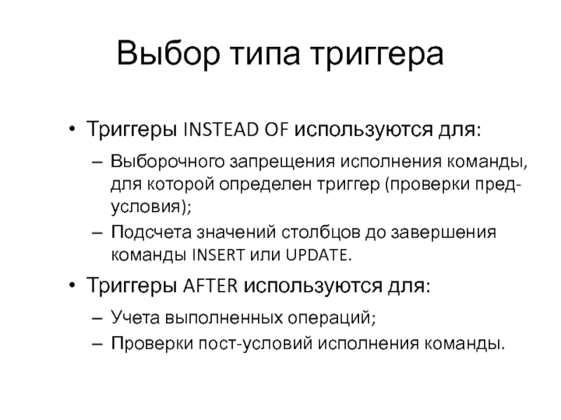 Слайд 42Применение триггеров