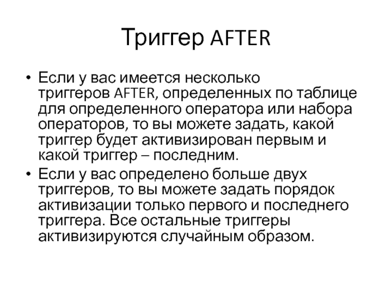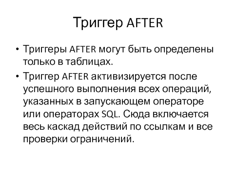 Триггеры запускаются после завершения оператора, который вызвал их активизацию.