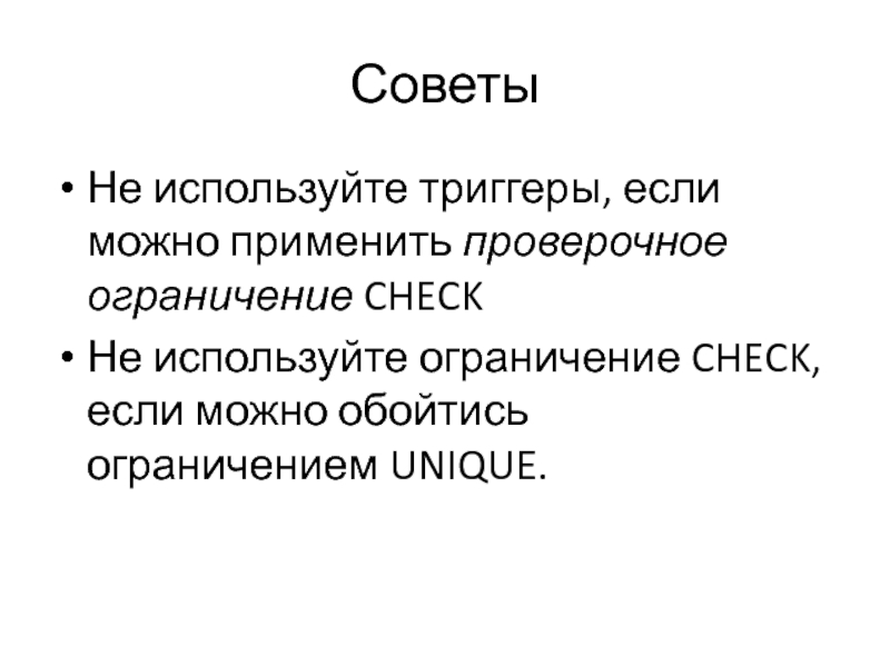 Не используйте триггеры, если можно применить проверочное ограничение CHECK