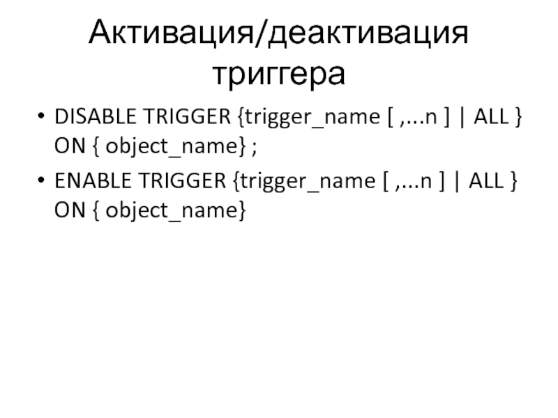 Слайд 41Активация/деактивация триггера