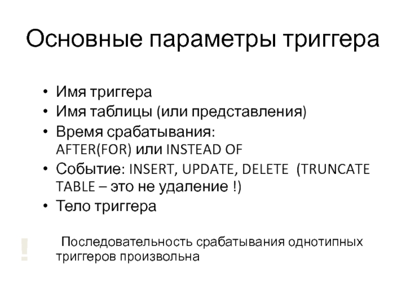 Слайд 13Основные параметры триггера