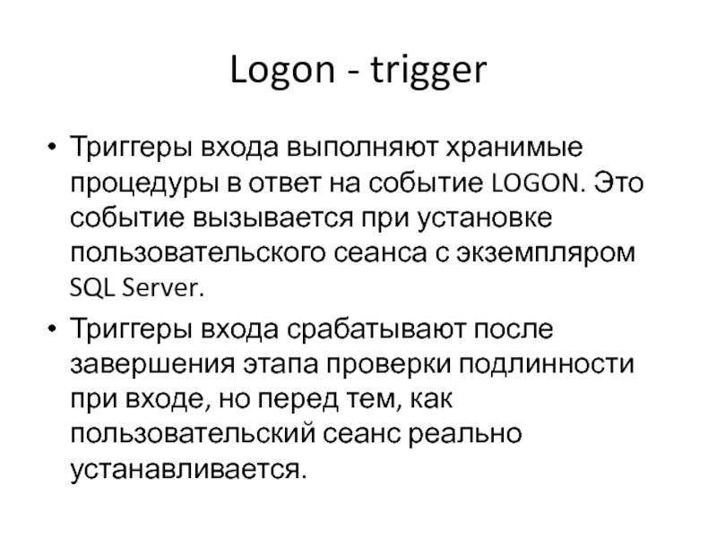 Слайд 52Logon - trigger