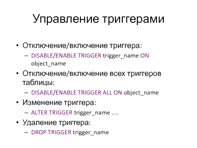 DISABLE/ENABLE TRIGGER trigger_name ON object_name