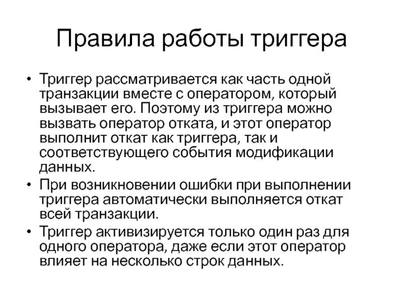 Слайд 15Правила работы триггера
