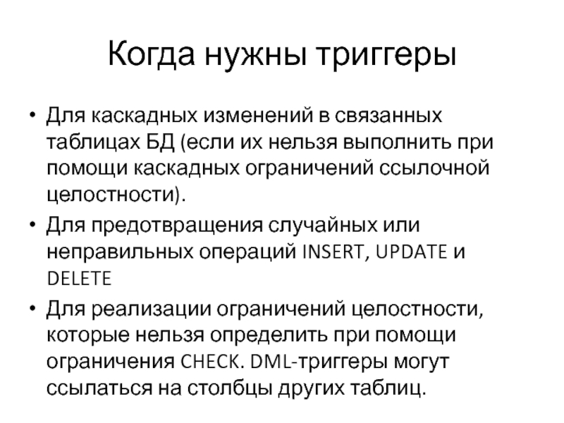 Слайд 9Когда нужны триггеры