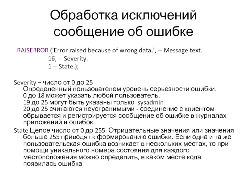ERROR_SEVERITY() возвращает уровень серьезности ошибки.