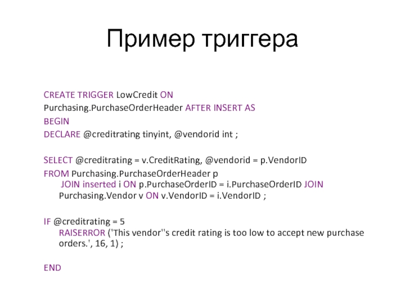 Слайд 37Пример триггера