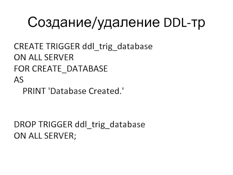 Слайд 48Создание/удаление DDL-тр