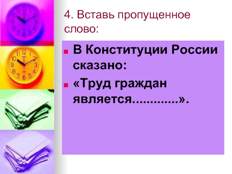 Слайд 65. Назови важнейший закон, регулирующий трудовую деятельность: