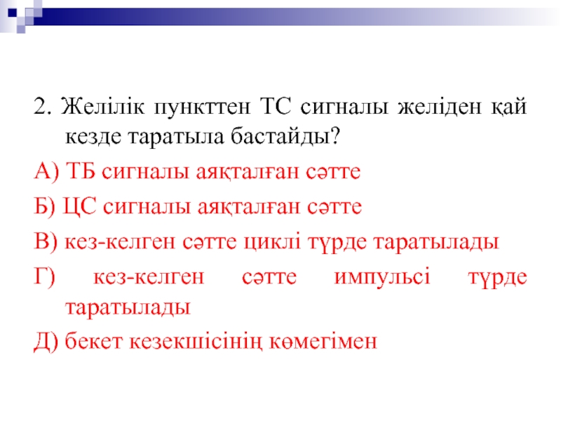2. Желілік пункттен ТС сигналы желіден қай кезде таратыла бастайды?