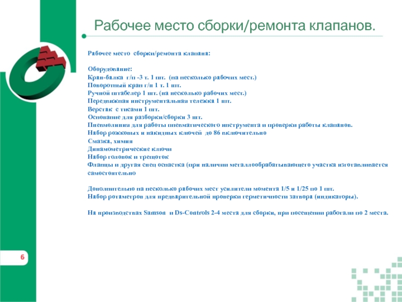 Место для проведения гидроиспытаний клапанов оборудуется стендом. На нем проводить входной контроль корпусов клапанов и выходные испытания клапанов после полной сборки