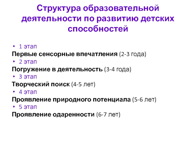 Слайд 5Структура образовательной деятельности по развитию детских способностей