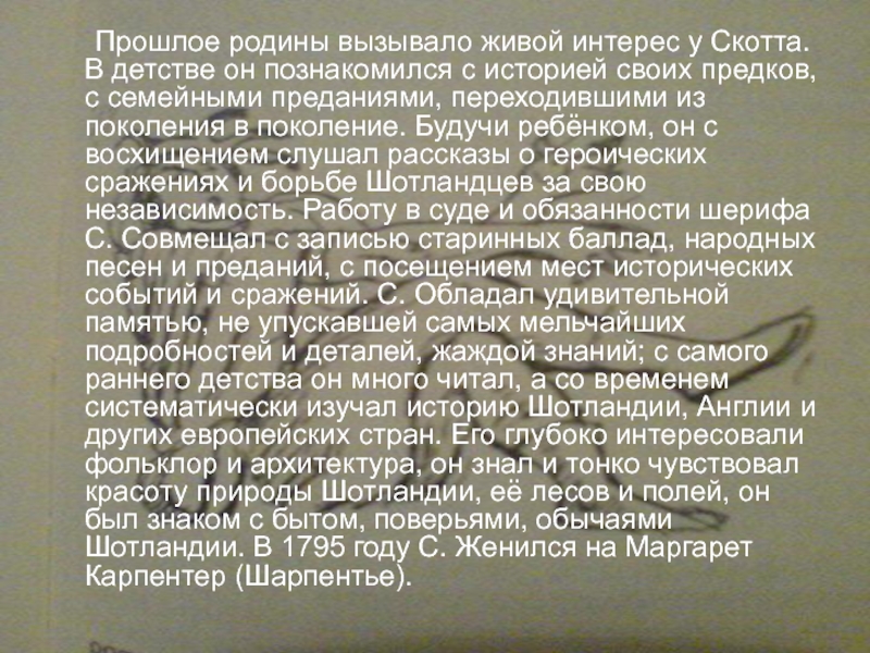 Слайд 4 Прошлое родины вызывало живой интерес у Скотта.