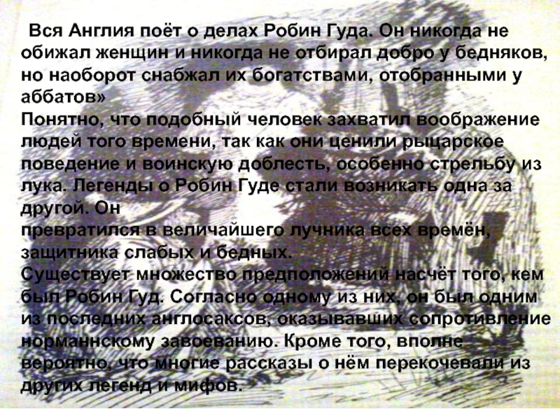 Слайд 50 Вся Англия поёт о делах Робин Гуда. Он никогда не