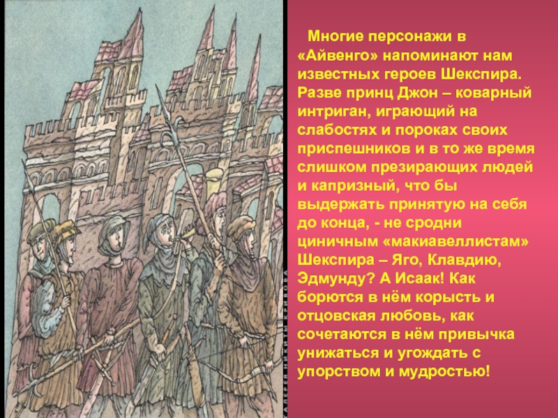 Слайд 8 Многие персонажи в «Айвенго» напоминают нам известных героев Шекспира. Разве