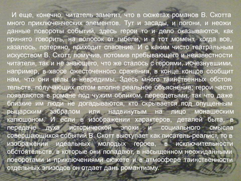 Слайд 35 Однако нельзя не отметить, что романы Вальтера Скотта