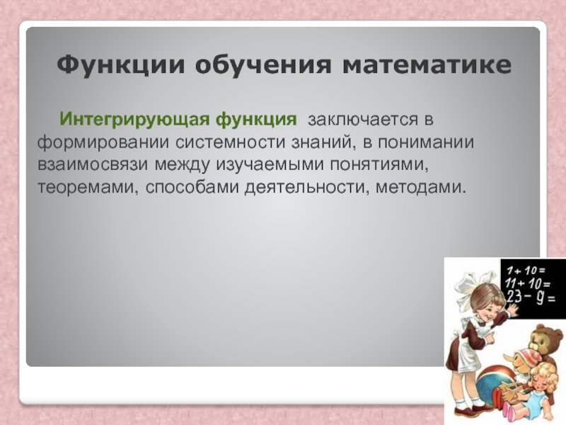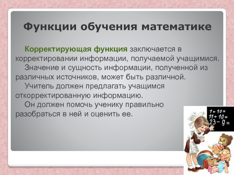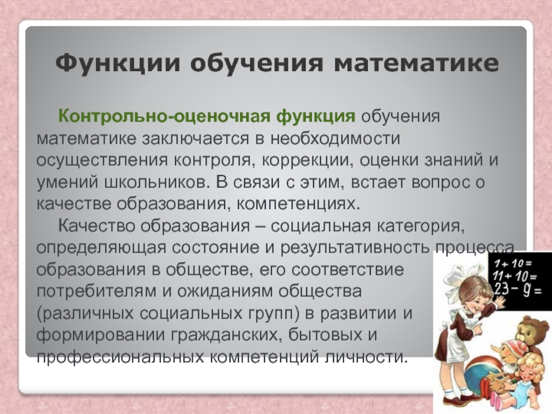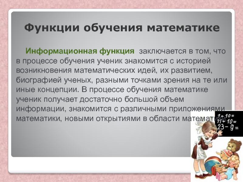Слайд 24Функции обучения математике