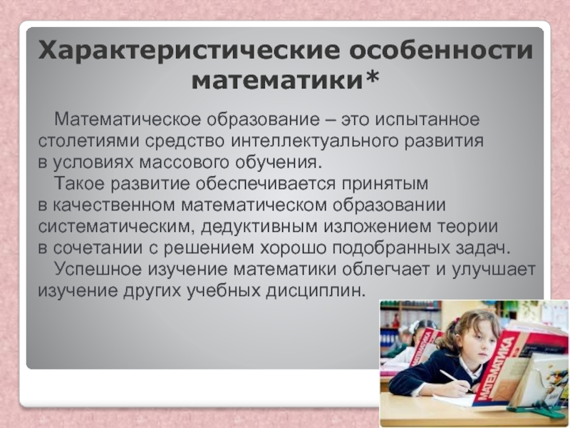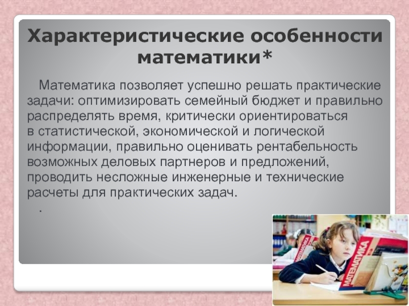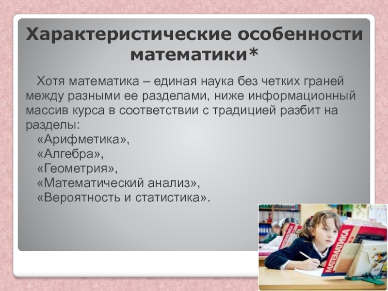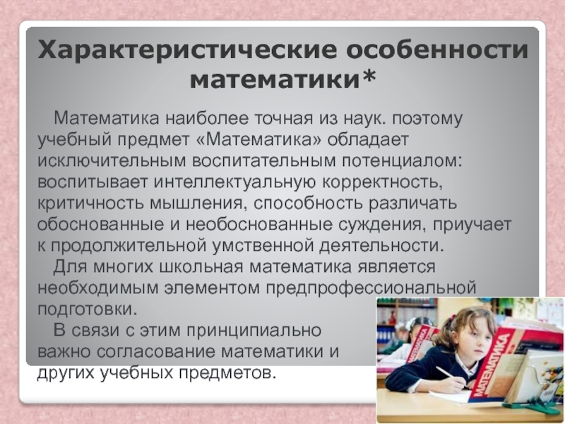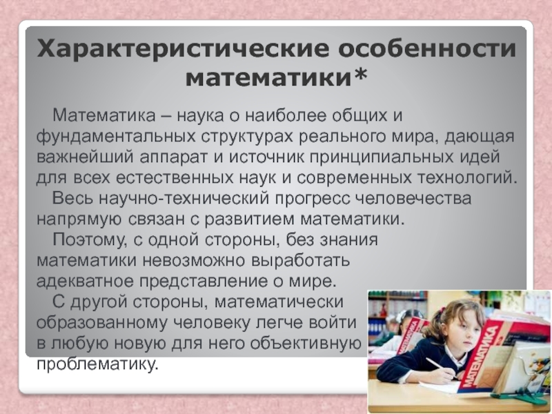 Слайд 9Характеристические особенности математики*