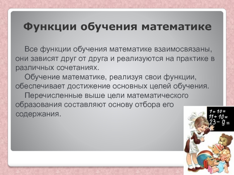Достижение целей обучения математике определяется функциями обучения математике.