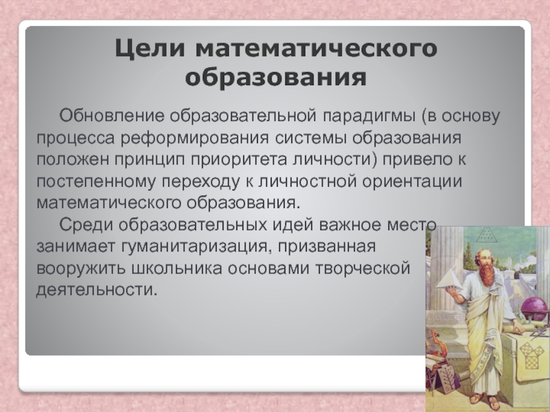 положен принцип приоритета личности) привело к постепенному переходу к личностной ориентации математического образования.