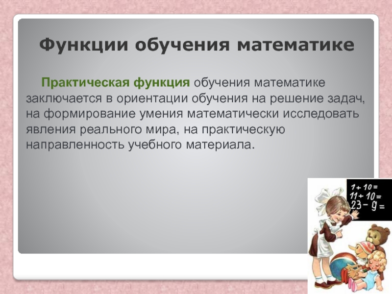 Практическая функция обучения математике заключается в ориентации обучения на