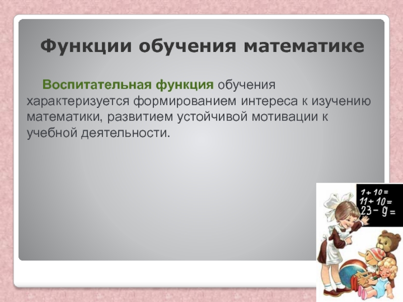Воспитательная функция обучения характеризуется формированием интереса к изучению математики,