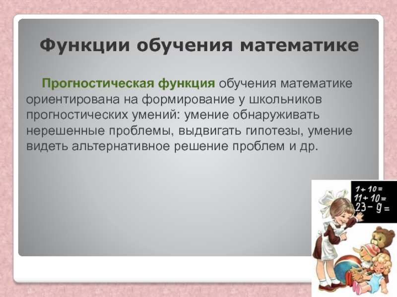 Прогностическая функция обучения математике ориентирована на формирование у школьников