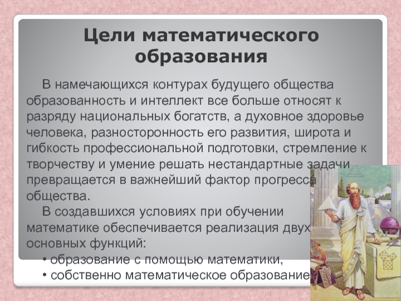Слайд 1Цели математического образования