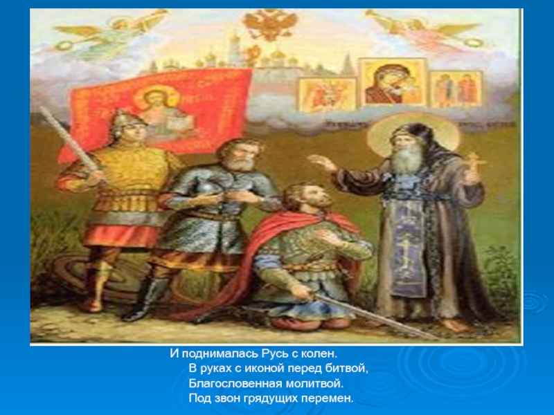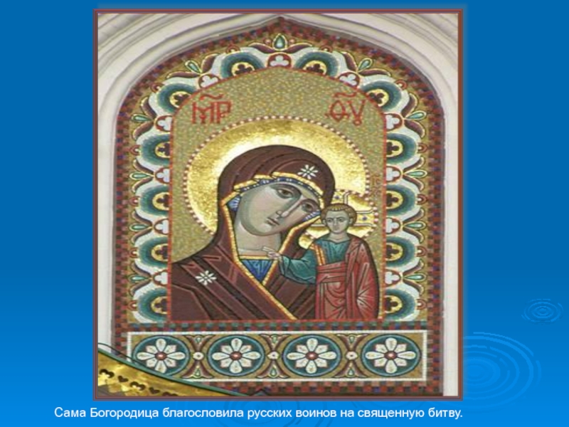 Слайд 21Сама Богородица благословила русских воинов на священную битву.