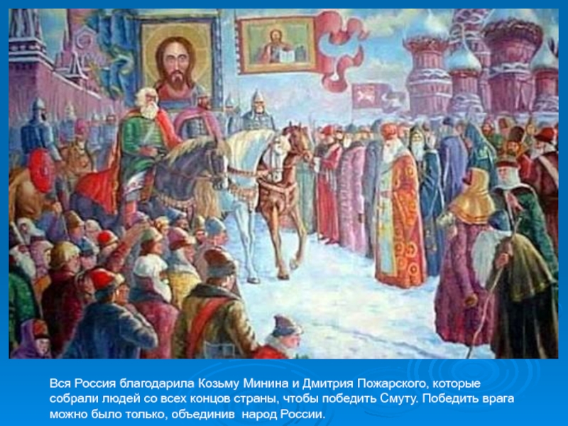 со всех концов страны, чтобы победить Смуту. Победить врага можно было только, объединив народ России.