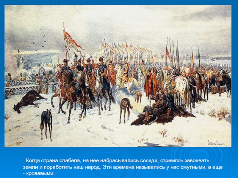 Слайд 8 Когда страна слабела, на нее набрасывались соседи, стремясь завоевать земли и