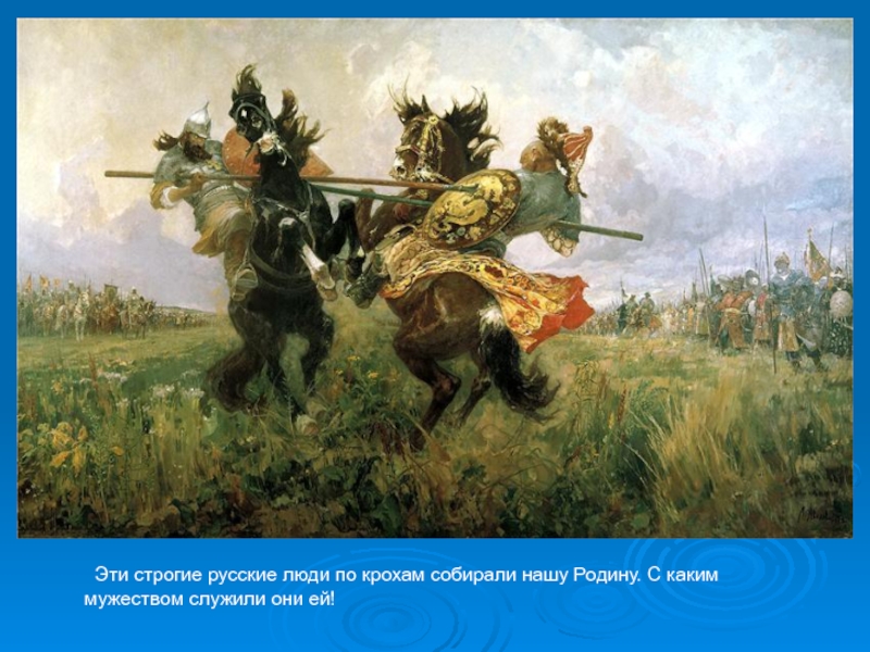 Слайд 5 Эти строгие русские люди по крохам собирали нашу Родину. С каким