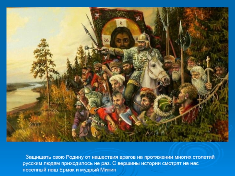 Слайд 4 Защищать свою Родину от нашествия врагов на протяжении многих столетий русским