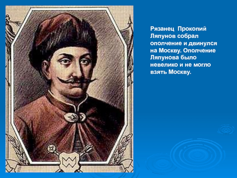 Рязанец Прокопий Ляпунов собрал ополчение и двинулся на Москву. Ополчение