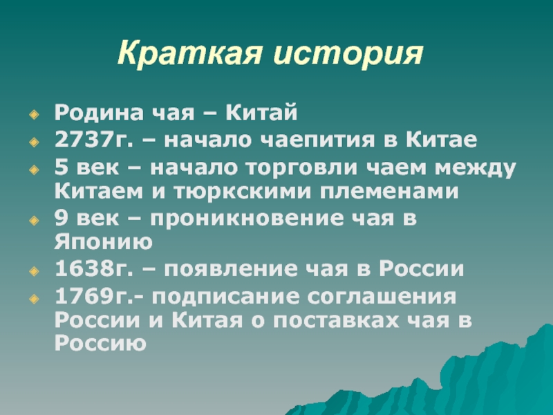 1769г.- подписание соглашения России и Китая о поставках чая в Россию