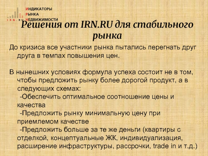 Слайд 11Решения от IRN.RU для стабильного рынка