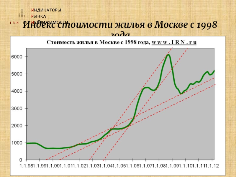 Слайд 4Индекс стоимости жилья в Москве с 1998 года