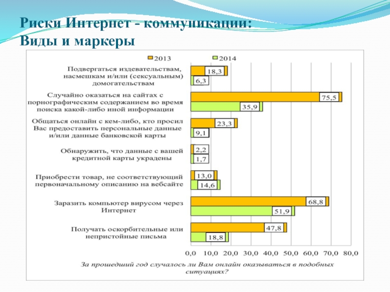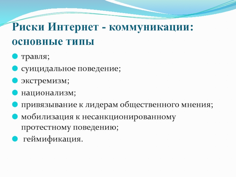 Слайд 11Риски Интернет - коммуникации: основные типы
