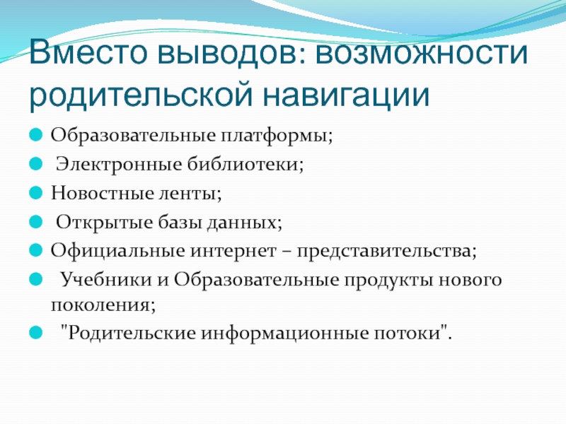 Слайд 32Вместо выводов: возможности родительской навигации