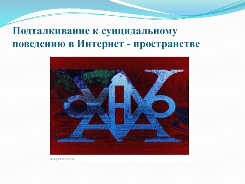 Слайд 18Подталкивание к суицидальному поведению в Интернет - пространстве