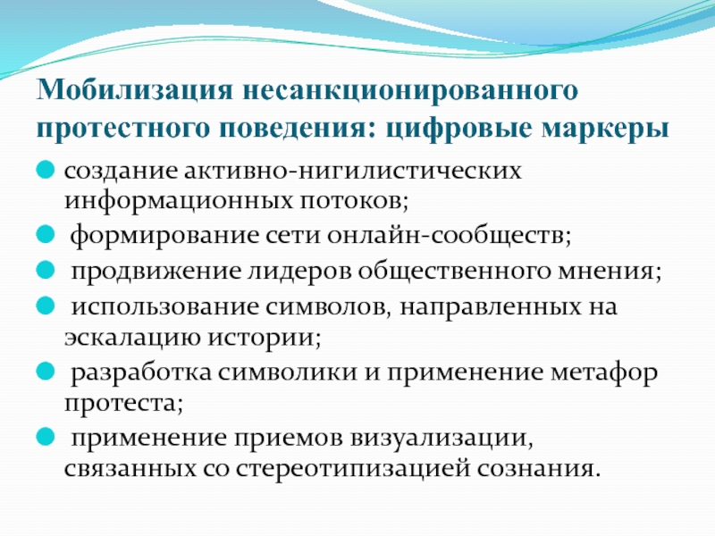 Слайд 26Мобилизация несанкционированного протестного поведения: цифровые маркеры