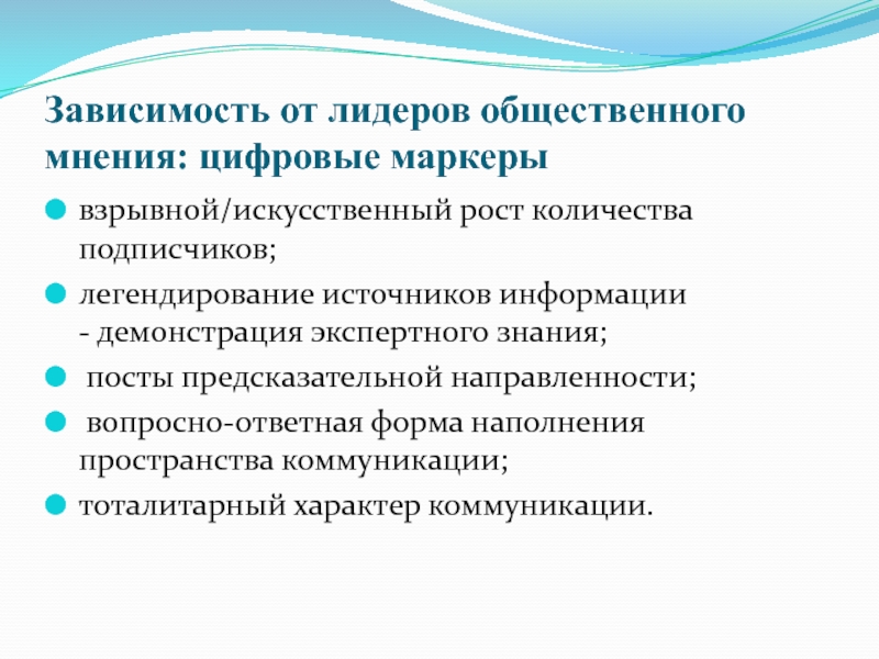 Слайд 23Зависимость от лидеров общественного мнения: цифровые маркеры