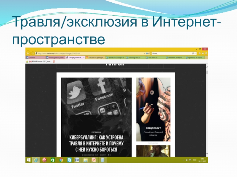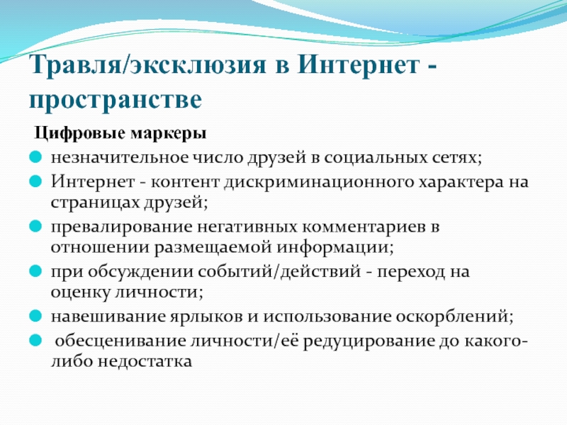 Слайд 13Травля/эксклюзия в Интернет - пространстве