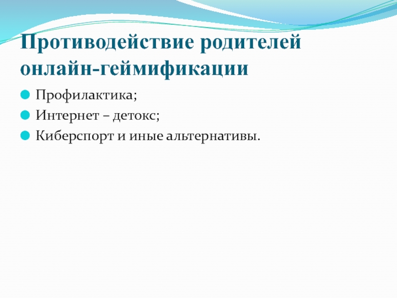Слайд 31Противодействие родителей онлайн-геймификации