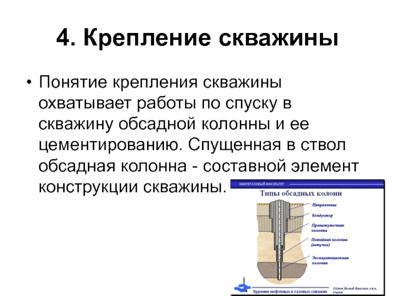 скважину обсадной колонны и ее цементированию. Спущенная в ствол обсадная колонна - составной элемент конструкции скважины.
