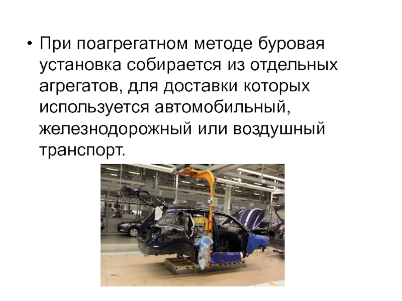 Слайд 5При поагрегатном методе буровая установка собирается из отдельных агрегатов, для доставки